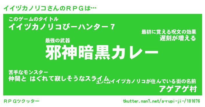 | 男性向けラノベタイトル風あだ名 | 『イイヅカノリコアートオンライン』 |