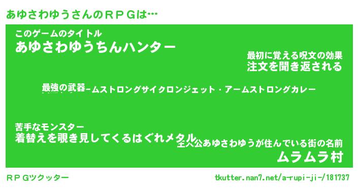 | 男性向けラノベタイトル風あだ名 | 『アユサワユウアートオンライン』 |