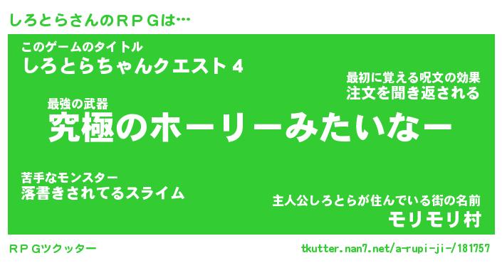 | ファンタジー風あだ名 | 『シロフェル』『エターナルシロトラー』 |
