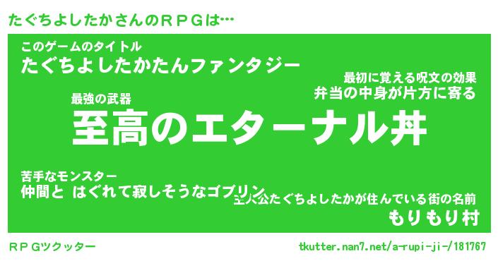 | 料理風あだ名 | 『節約★たぐちよしたかと油揚げの玉子丼』 |