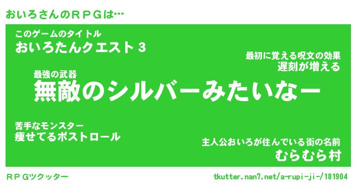 | ツイッター | おいろさんのツイッターID『dendenmushi_kun』 |
