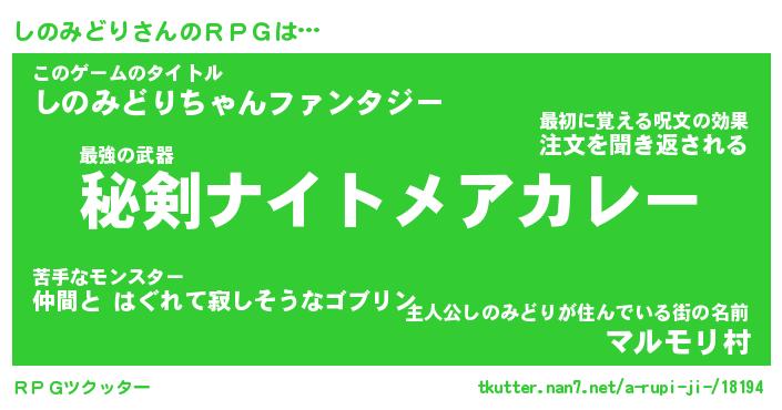 | ファンタジー風あだ名 | 『シノフェル』『エターナルシノミドリー』 |