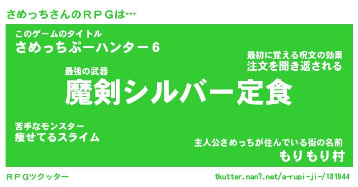 | 伝説のあだ名 | 『伝説の傭兵さめっち』 |