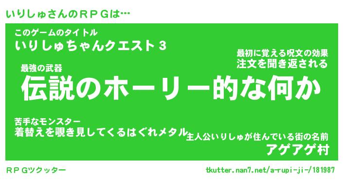 | 意味不明あだ名 | 『ペロリンいりしゅ』『永久保存いりしゅ』 |