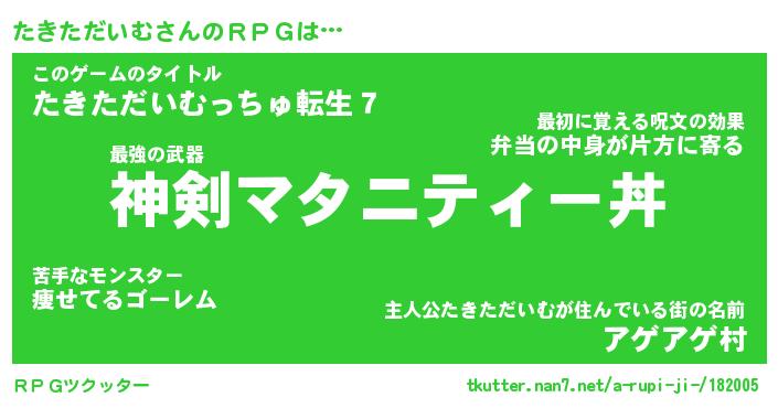 | 男性向けラノベタイトル風あだ名 | 『たきただいむの憂鬱』 |