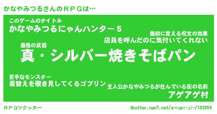 | 男性向けラノベタイトル風あだ名 | 『カナヤミツルアートオンライン』 |