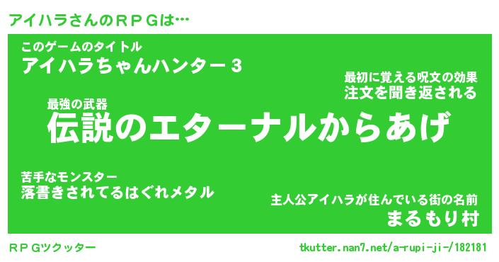 | 料理風あだ名 | 『節約★アイハラと油揚げの玉子丼』 |
