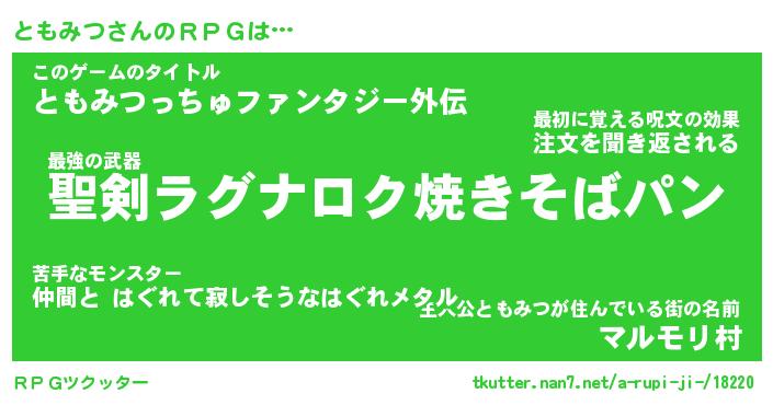 | ファンタジー風あだ名 | 『トモフェル』『エターナルトモミツー』 |