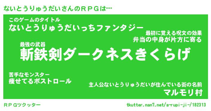 | 男性向けラノベタイトル風あだ名 | 『ないとうりゅうだいの憂鬱』 |