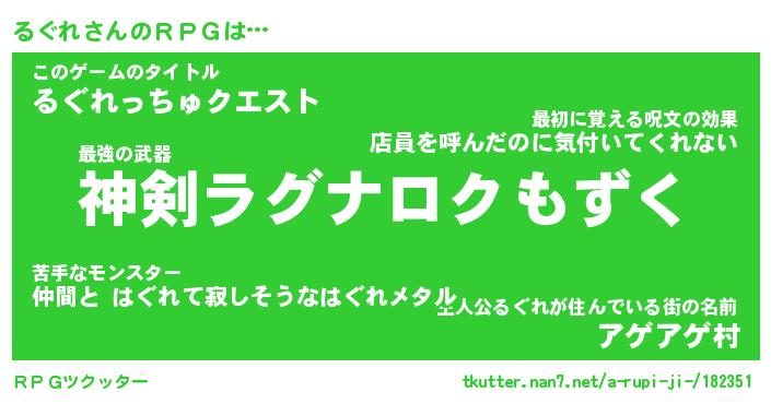 | ヒーロー風カッコイイあだ名 | 『スーパールグレ』『ウルトラるぐれマン』 |