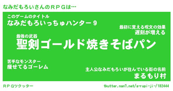 | 男性向けラノベタイトル風あだ名 | 『なみだもろいの憂鬱』 |