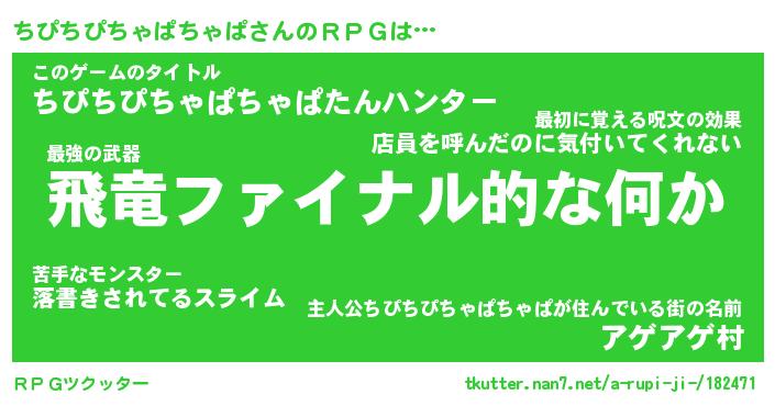 | 男性向けラノベタイトル風あだ名 | 『チピチピチャパチャパアートオンライン』 |