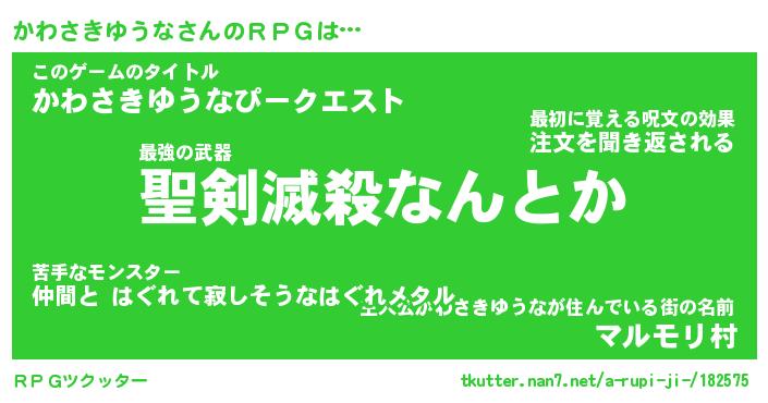 | 胡散臭い通販商品みたいなあだ名 | 『必ず成功する霊験あらたかなお札…その名も「かわさきゆうな」』 |