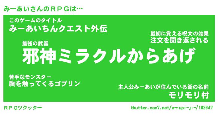 | ファンタジー風あだ名 | 『ミーフェル』『エターナルミーアイー』 |