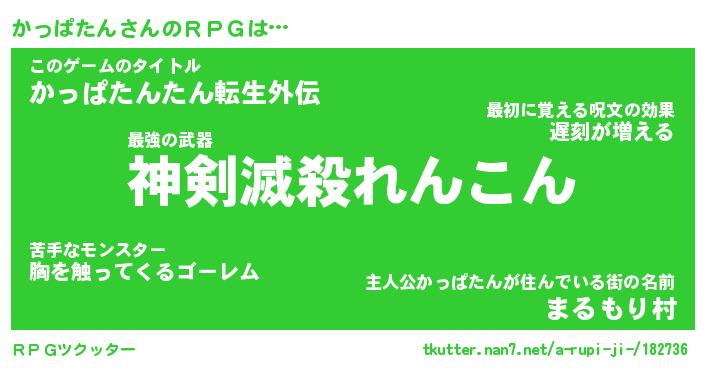 | 胡散臭い通販商品みたいなあだ名 | 『モテモテ間違いなし霊験あらたかなお札…その名も「かっぱたん」』 |