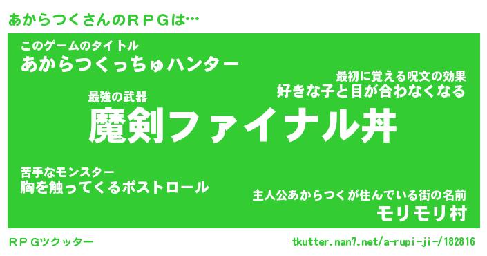 | 伝説のあだ名 | 『伝説の竜騎士あからつく』 |