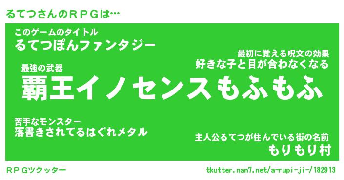 | ヘコむあだ名 | 『るてっふぃ~』『豆乳』『るてお』 |