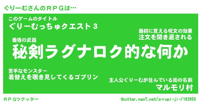| 男性向けラノベタイトル風あだ名 | 『ぐりーむの憂鬱』 |
