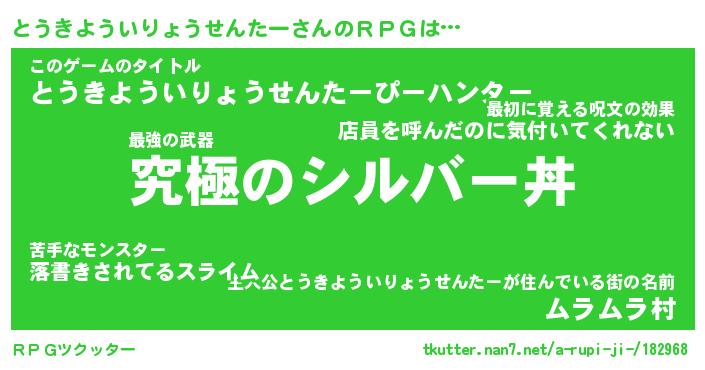 | 男性向けラノベタイトル風あだ名 | 『とうきよういりょうせんたーの憂鬱』 |