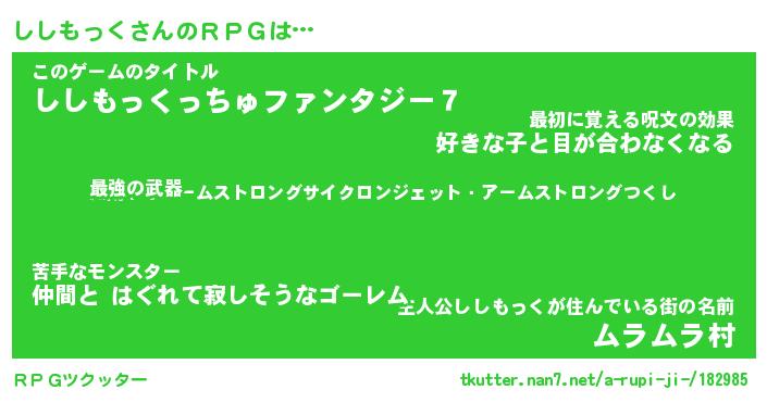 | 男性向けラノベタイトル風あだ名 | 『ししもっくの憂鬱』 |