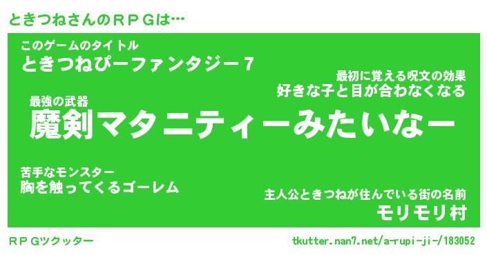 | ファンタジー風あだ名 | 『トキフェル』『エターナルトキツネー』 |