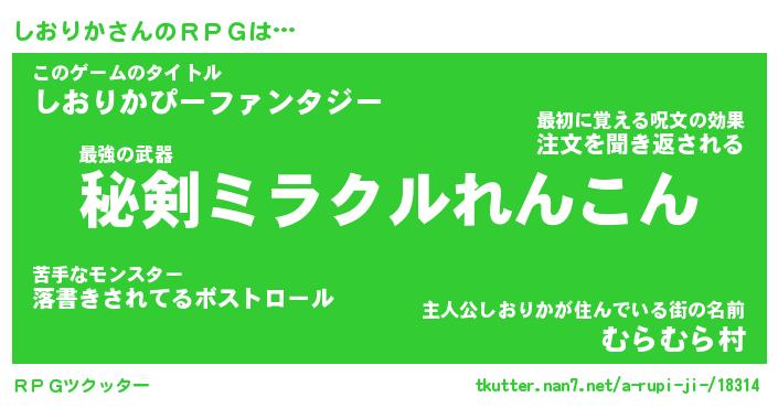 | ファンタジー風あだ名 | 『シオフェル』『エターナルシオリカー』 |
