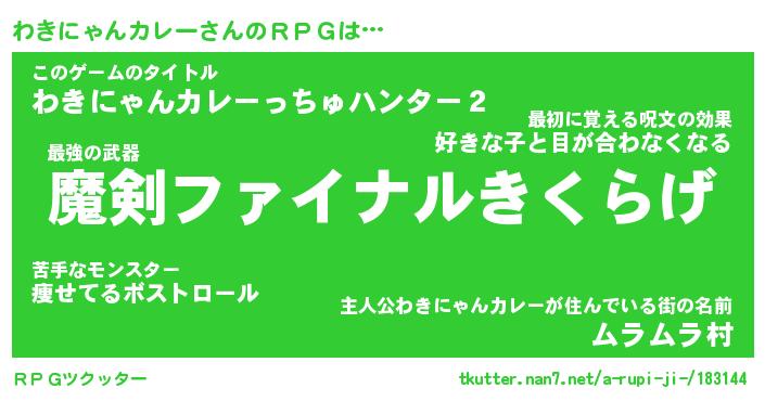 | 伝説のあだ名 | 『伝説の竜騎士わきにゃんカレー』 |