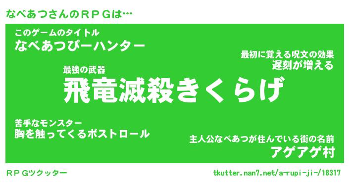 | 伝説のあだ名 | 『封印されしスナイパーなべあつ』 |