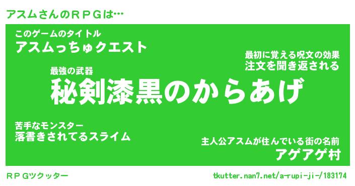 | ファンタジー風あだ名 | 『アスフェル』『エターナルアスムー』 |