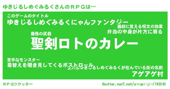 | 伝説のあだ名 | 『伝説の竜騎士ゆきじるしめぐみるく』 |