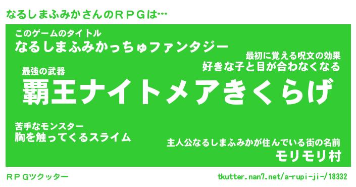 | 男性向けラノベタイトル風あだ名 | 『ナルシマフミカアートオンライン』 |