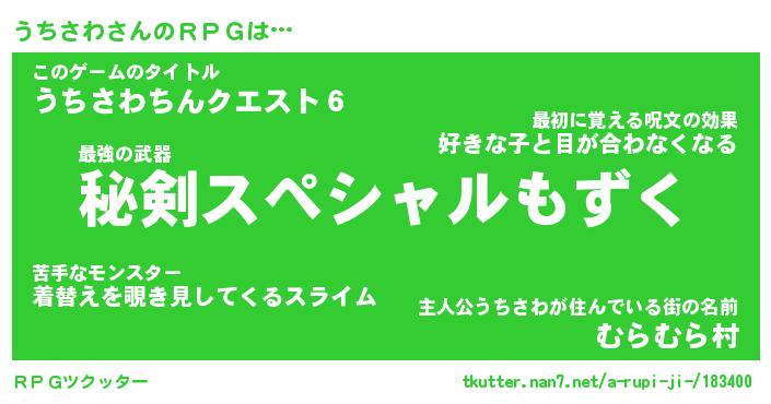 | 男性向けラノベタイトル風あだ名 | 『うちさわの憂鬱』 |