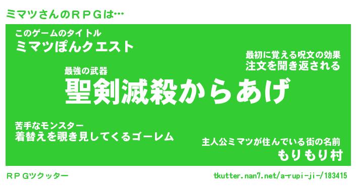 | 胡散臭い通販商品みたいなあだ名 | 『必ず成功する霊験あらたかなお札…その名も「ミマツ」』 |