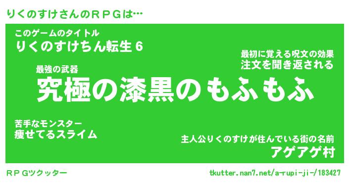 | 男性向けラノベタイトル風あだ名 | 『りくのすけの憂鬱』 |
