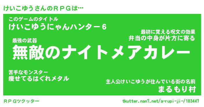 | ツイッター | けいこゆうさんのツイッターID『dendenmushi_nyan』 |