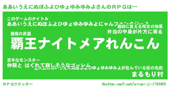 | 胡散臭い通販商品みたいなあだ名 | 『億万長者になれる霊験あらたかなお札…その名も「ああいうえにぬほふよひゆょゆみゆみよ」』 |