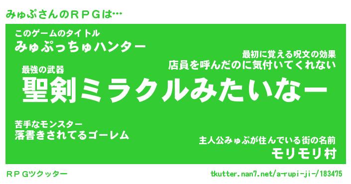 男性向けラノベタイトル風あだ名 | 『みゅぷの憂鬱』 |