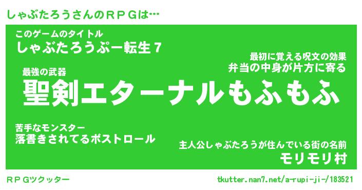 | 男性向けラノベタイトル風あだ名 | 『しゃぶたろうの憂鬱』 |