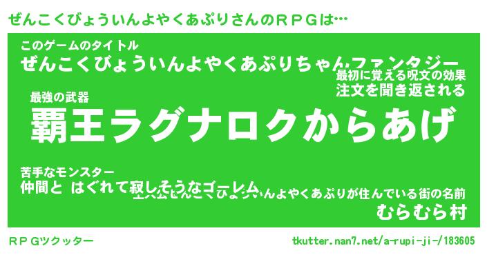 | 伝説のあだ名 | 『封印されし竜騎士ぜんこくびょういんよやくあぷり』 |