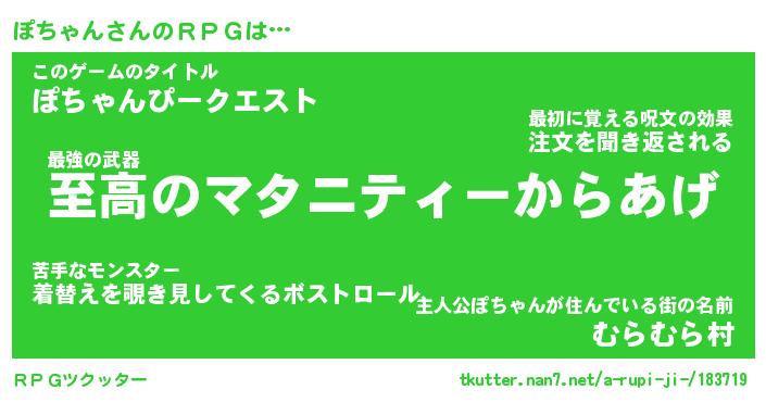 | ファンタジー風あだ名 | 『ポチフェル』『エターナルポチャンー』 |