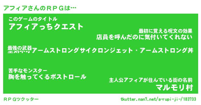 | 男性向けラノベタイトル風あだ名 | 『アフィアの憂鬱』 |