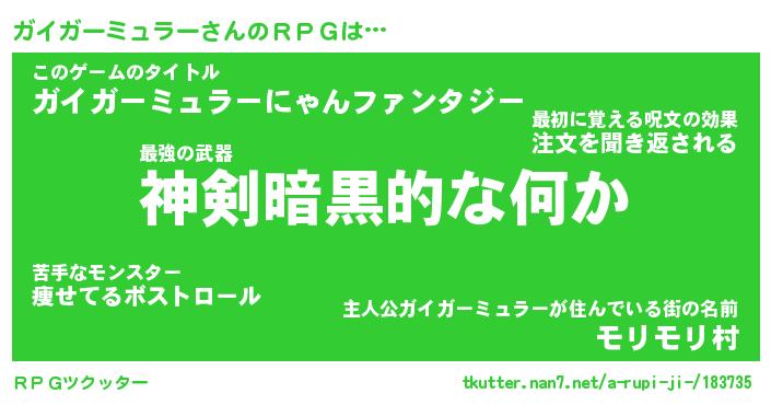 | 男性向けラノベタイトル風あだ名 | 『ガイガーミュラーの憂鬱』 |
