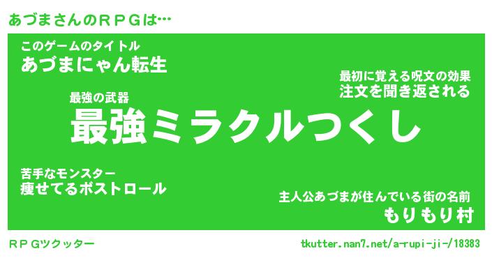 | 男性向けラノベタイトル風あだ名 | 『アヅマアートオンライン』 |