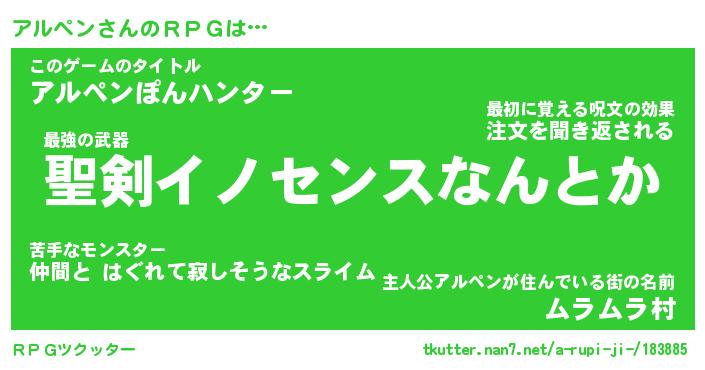 | 男性向けラノベタイトル風あだ名 | 『アルペンの憂鬱』 |