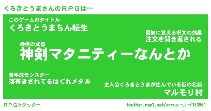 | 胡散臭い通販商品みたいなあだ名 | 『モテモテ間違いなし霊験あらたかなお札…その名も「くろきとうま」』 |