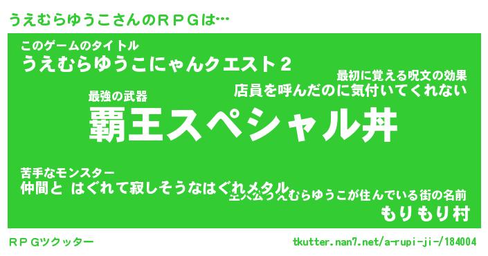 | ヘコむあだ名 | 『うえにー』『なまこ酢』『うえお』 |