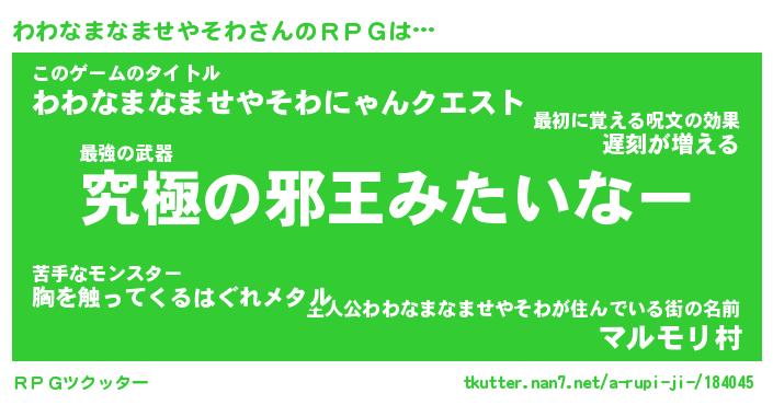 | 男性向けラノベタイトル風あだ名 | 『わわなまなませやそわの憂鬱』 |