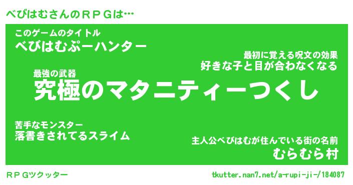 | 意味不明あだ名 | 『ペロリンべびはむ』『永久保存べびはむ』 |