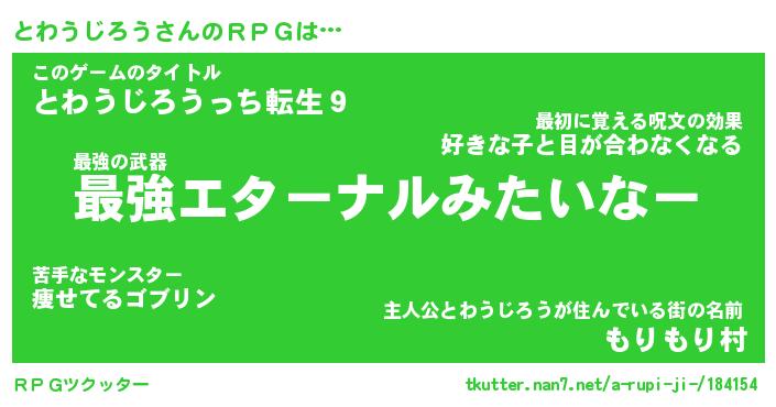 | 男性向けラノベタイトル風あだ名 | 『トワウジロウアートオンライン』 |
