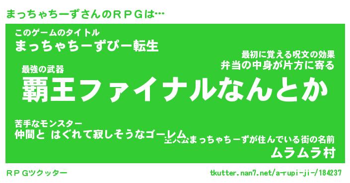 | 伝説のあだ名 | 『封印されし竜騎士まっちゃちーず』 |